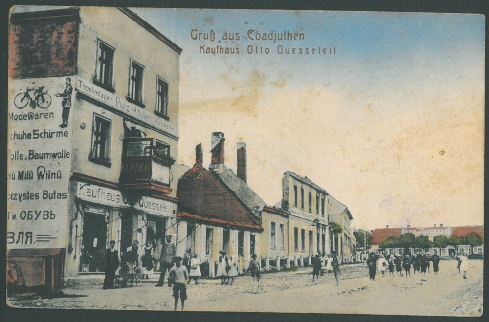 Iškabos:„Tapetų sandėlis, buities prekės“„Otto Quesselleit universalinė parduotuvė“