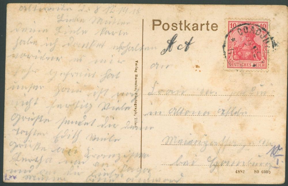 Reklama ant sienos:„Madingos prekės“„Batai, skėčiai“„Vilna, medvilnė“„Audiniai ir kepurės“„Vilnius (Wilna – senasis vokiškas pavadinimas)“„ir avalynė“